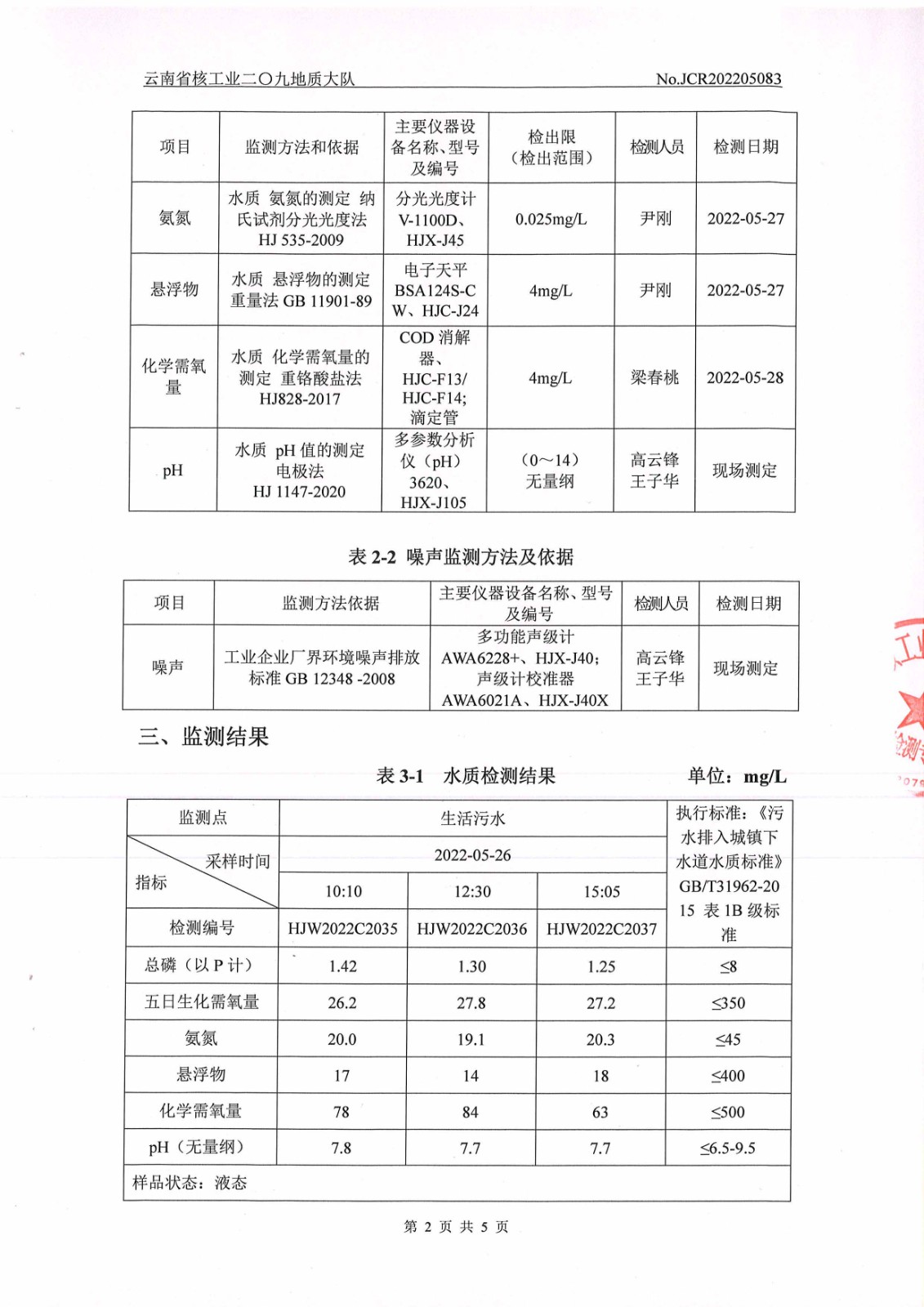水質(zhì)、噪聲監(jiān)測(cè)報(bào)告